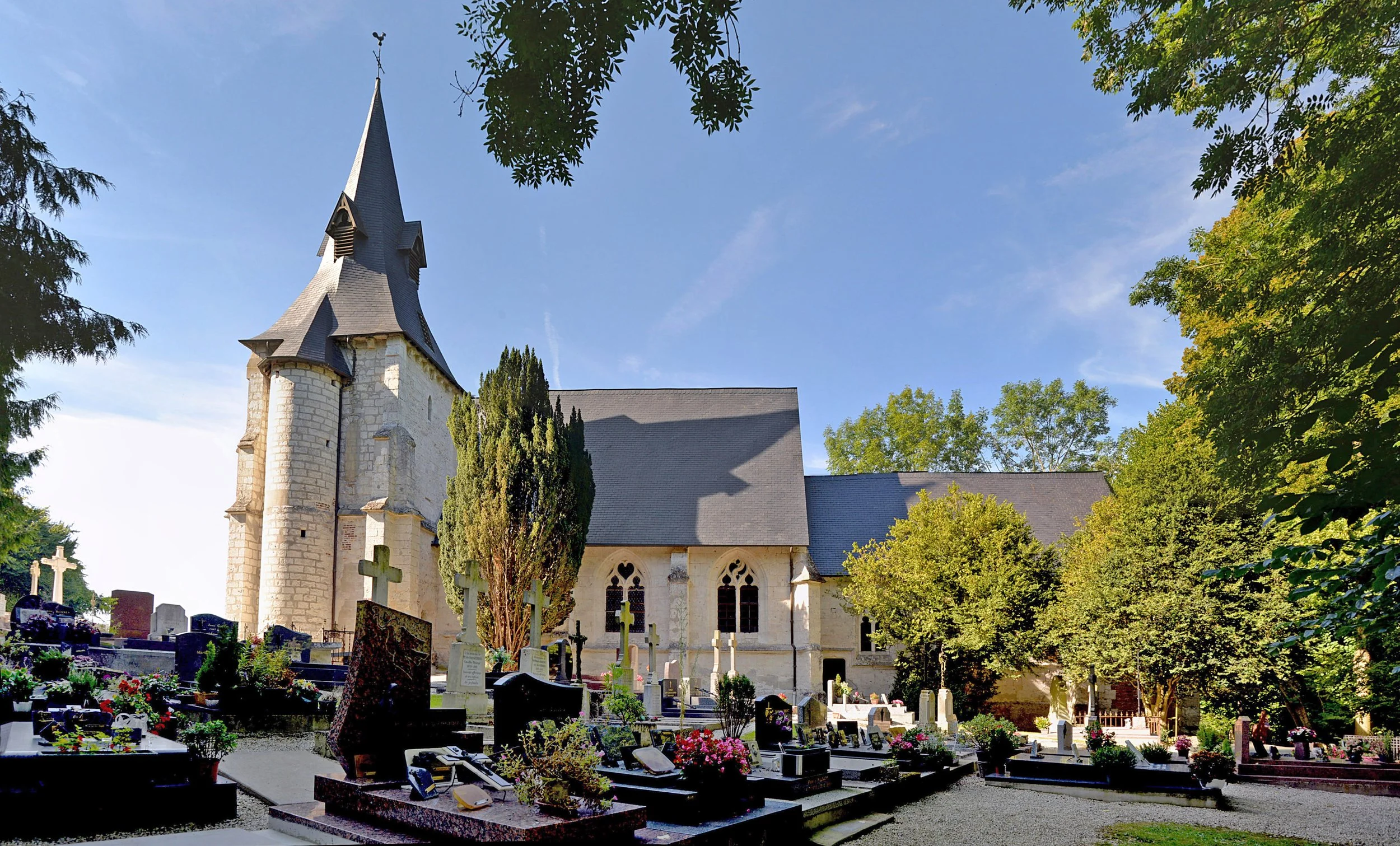 The church of Saint-Étienne in Reux where Adrien was likely baptized exemplifies the architectural evolution typical of Norman parish churches. The structure blends Romanesque and Gothic elements: its square tower with carved modillons represents the oldest section, dating to the twelfth and thirteenth centuries, while the main body was constructed during the fifteenth and sixteenth centuries and features a Renaissance west portal. The timber-framed porch and ancient yews distinguish the exterior, and the building commands views over the Touques valley with the austere, substantial character common to rural churches in the region. It received historic monument protection in 2015.
