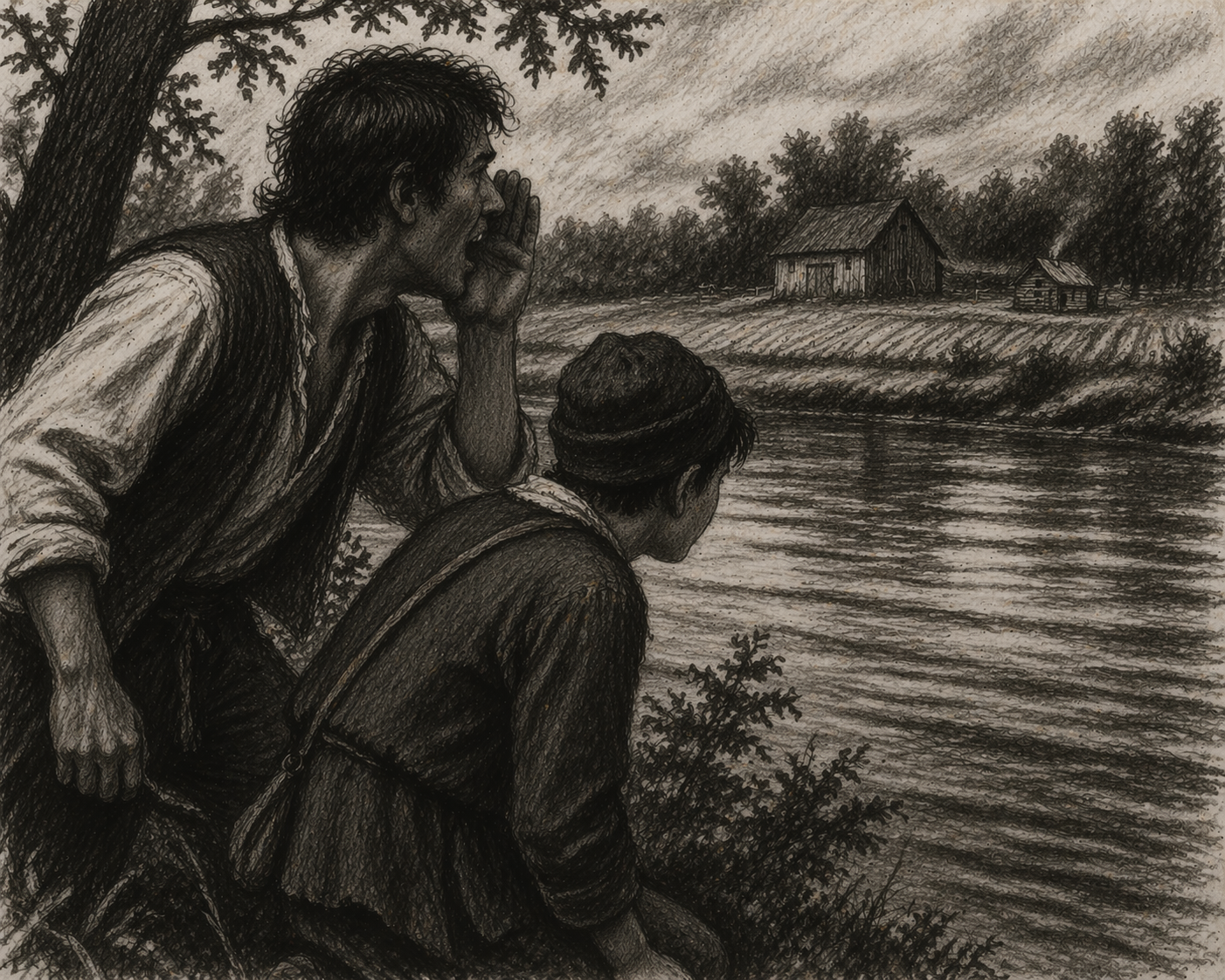 Gauthier shouting from across the river (artificial intelligence image created by the author with ChatGPT, April 2026)