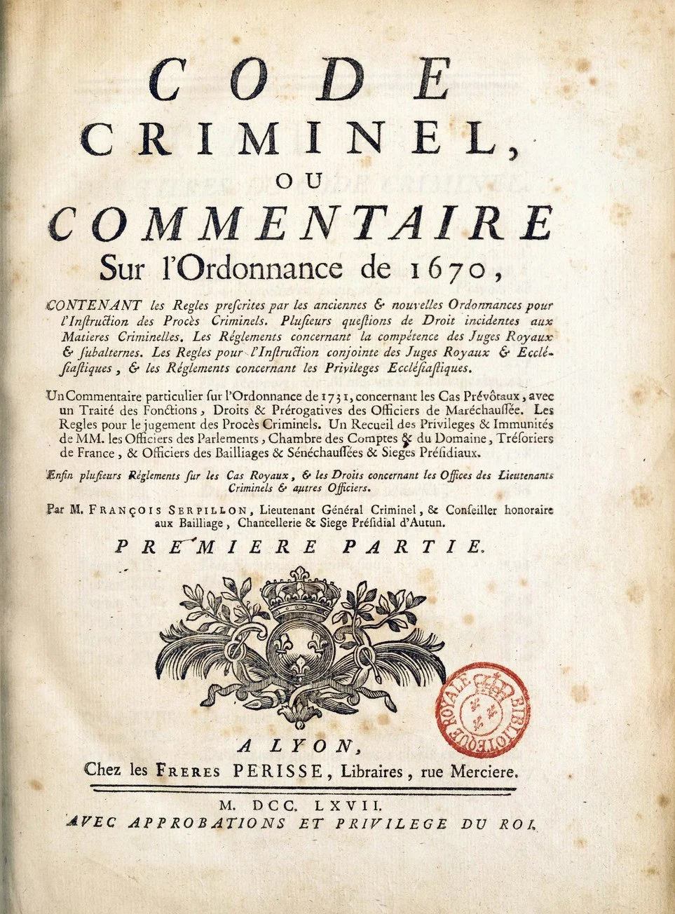 Louis XIV, Code criminel, ou Commentaire sur l'ordonnance de 1670, digital images, Bibliothèque nationale de France (https://gallica.bnf.fr/ark:/12148/bpt6k9740763j/ : accessed 17 Apr 2026).