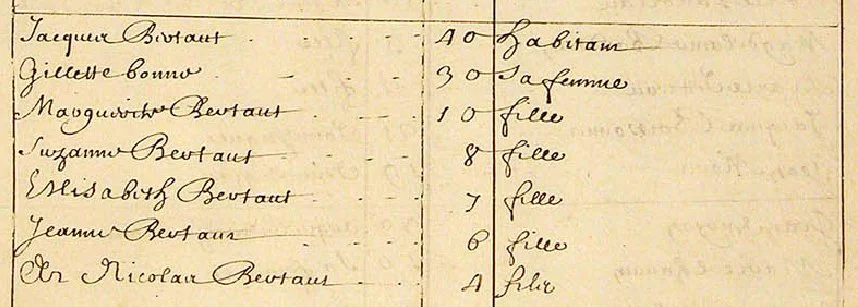 1666 Census of New France for the “Bertaut” family (Library and Archives Canada)