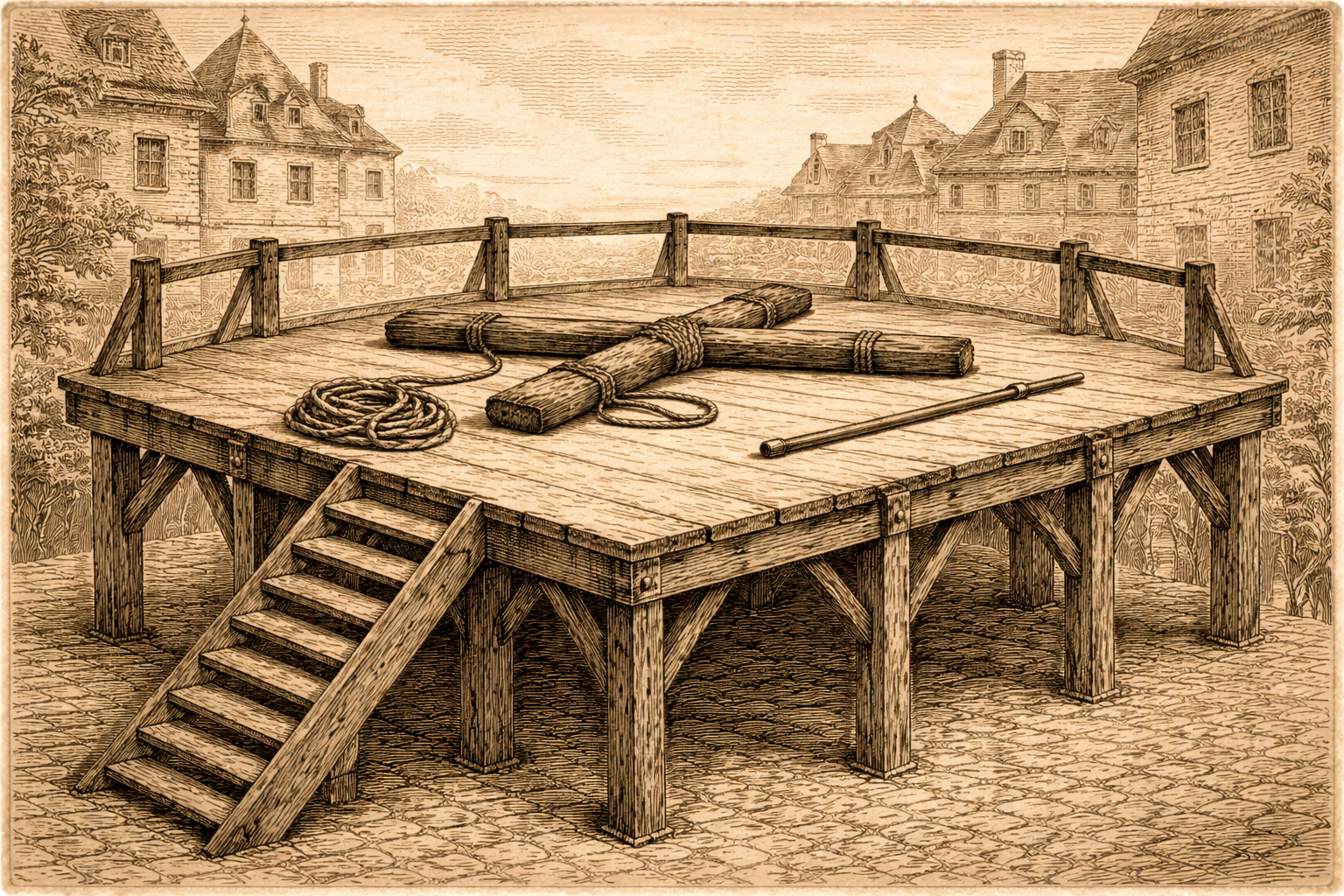 Saint Andrew’s cross on a scaffold (artificial intelligence image created by the author with ChatGPT, April 2026)