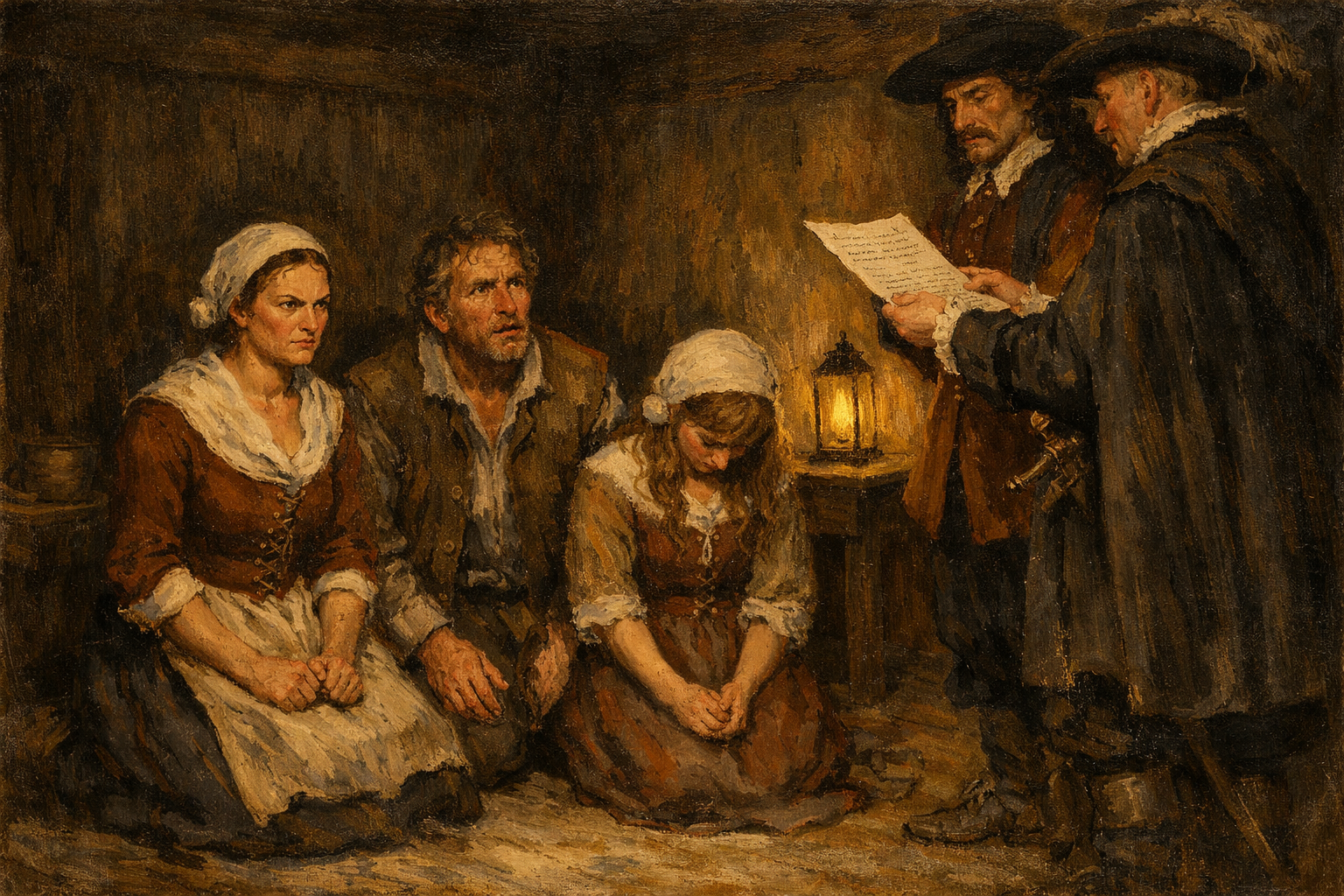 The sentence was delivered: Jacques, Gillette, and Isabelle were to be taken from prison and led, with a rope around their necks and a torch in hand, before the door of the parish church, where Jacques, bareheaded and in his shirt, and the two women, in their shifts (undergarments) to the waist, must, on their knees, ask forgiveness of God and the King for the crimes committed.
