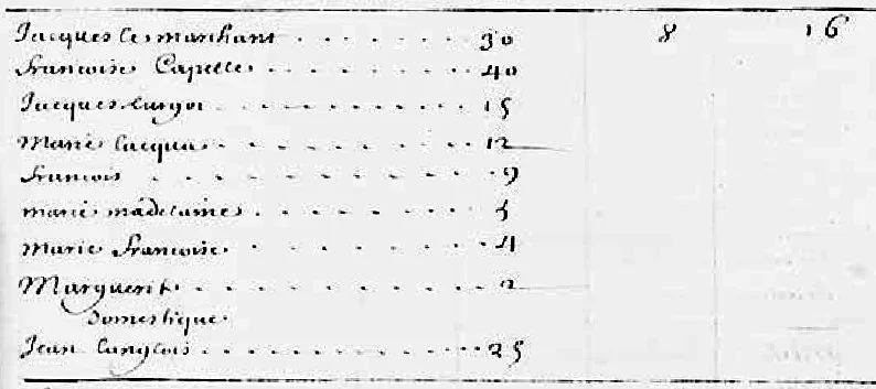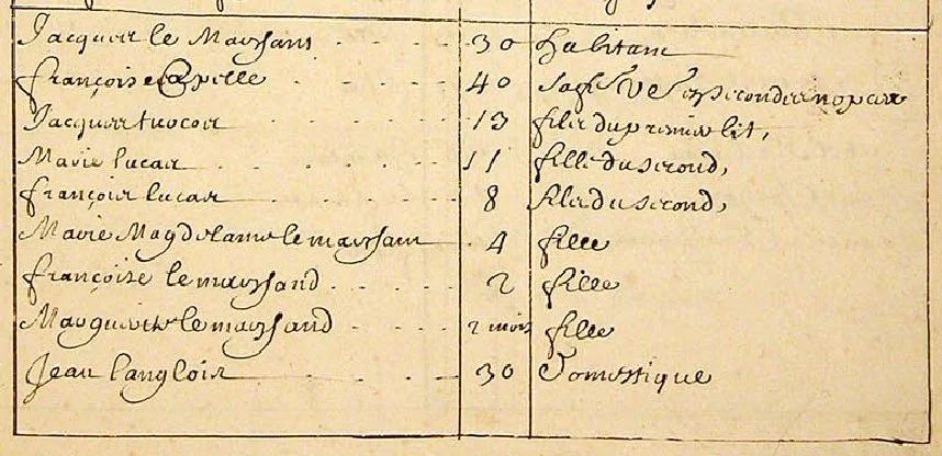 En 1667, un autre recensement est réalisé. Jacques et Françoise résident au « Petit Cap de la Magdeleine » avec leurs enfants et leur domestique Jean Langlois. La famille possède seize arpents de terre « en valeur » (défrichée et mise en culture) et huit animaux.