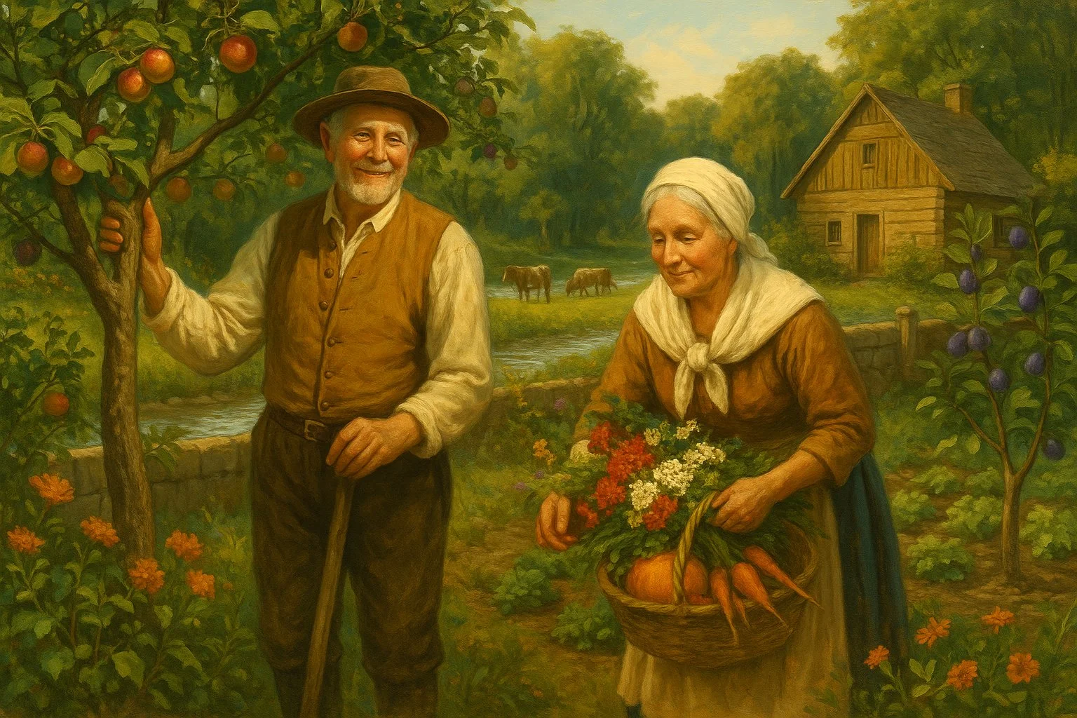 Désireux de joindre l’utile à l’agréable, Jacques Marchand entoure son domaine d’un mur et "le fait complanter d’arbres fruitiers, des pommiers, des pruniers". La dame de céans a son jardin où les légumes disputent le terrain aux fleurs. Les roses, les œillets, le réséda, et les marjolaines ouvrent tour à tour leurs corolles et répandent leurs parfums qui se mêlent à ceux des essences forestières et des foins d’odeur. La vaillante ménagère fera de ces chènevières de belles bottes qu’elle dissimulera dans la grande armoire si bien fournie de linge de toile. »