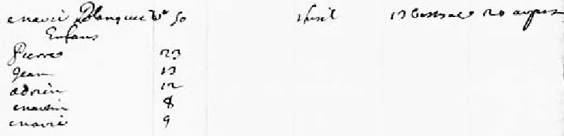 Recensement de 1681 pour le ménage de Marie Blanquet (Bibliothèque et Archives Canada)