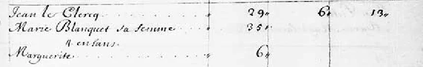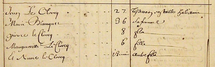 Jean Leclerc décède donc entre l’automne 1679 (date de son départ pour la France) et novembre 1681 (date du recensement), probablement en mer ou en France. Aucun acte de sépulture n’a été retrouvé.