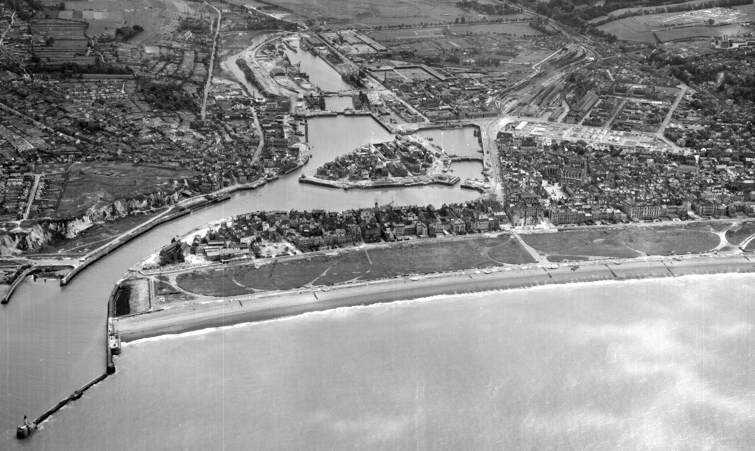 Photographie aérienne de Dieppe prise en juin 1945 (U.S. National Archives and Records Administration)