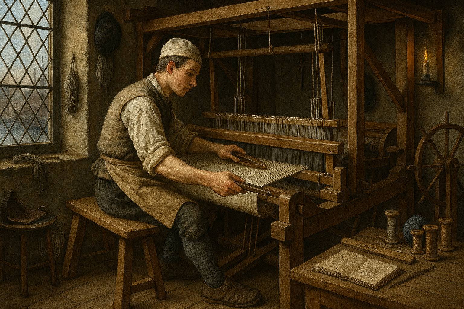 On ne sait pas si Jean et Marie s’installent à Dieppe ou Ocqueville après leur mariage. Qu’ils résident à Saint-Rémy de Dieppe ou chez la famille de Marie à Ocqueville, le cadre de vie reste lié au lin. À Dieppe, un port très actif, un tisserand en toile répond aux commandes de linge domestique, canevas et parfois voilerie, au rythme des saisons maritimes et des conflits qui ralentissent le trafic. À Ocqueville, au cœur du pays de Caux, la filière du lin (rouissage, teillage, filage puis tissage à domicile ou en petit atelier) fournit un revenu modeste et irrégulier. Partout, la Fronde (guerres civiles en France, 1648-1653), les impôts et les mauvaises récoltes du début des années 1660 font grimper le prix du pain et serrent le budget des familles d’artisans ; le travail devient irrégulier selon la demande.