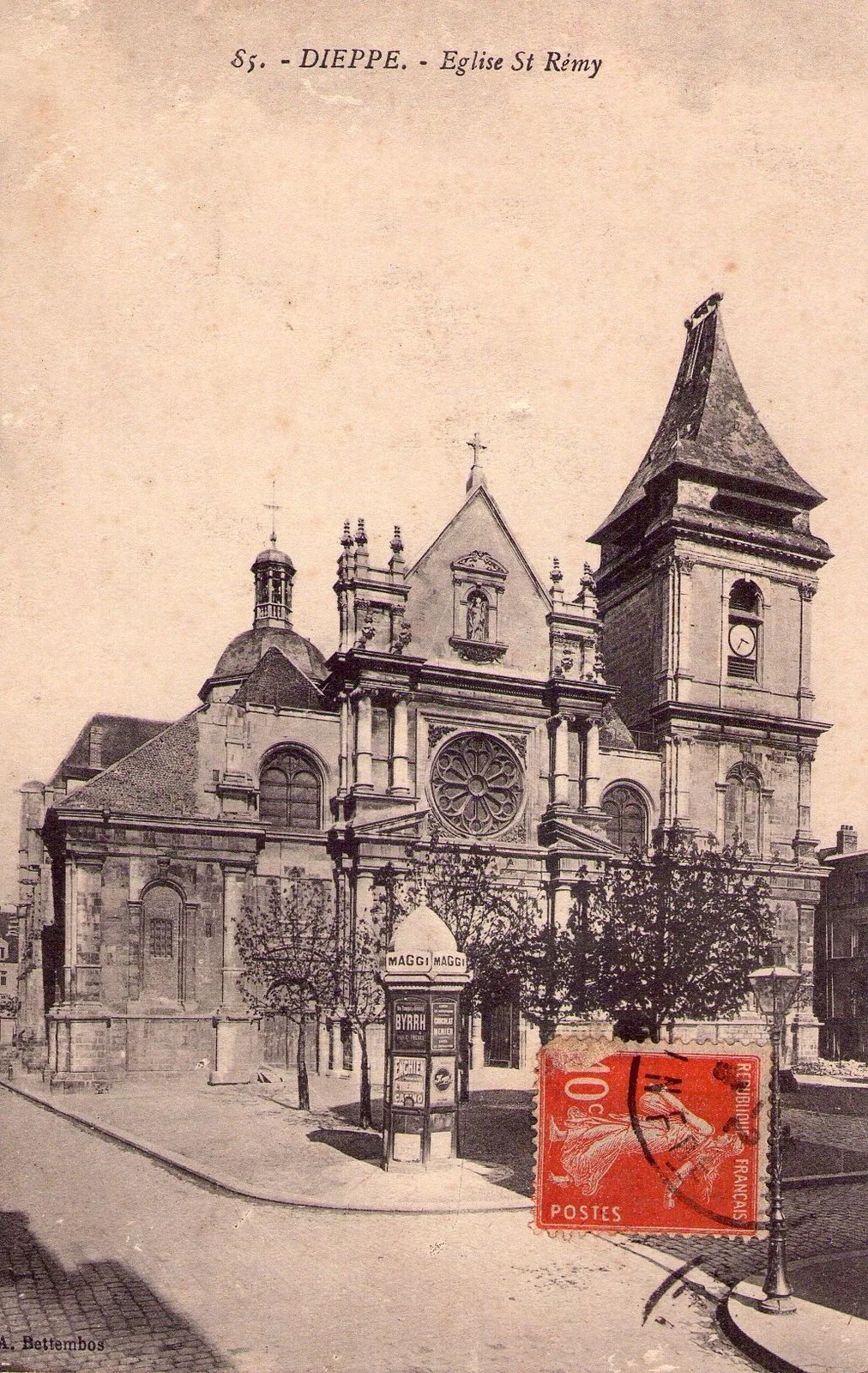 Église Saint-Rémy, carte postale, 1915 (Geneanet)