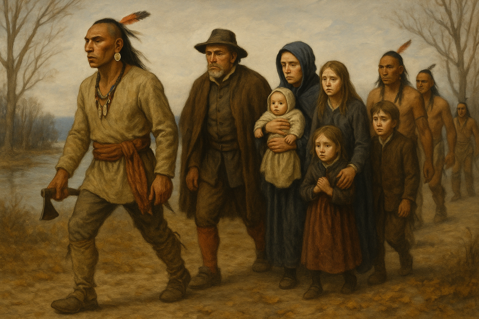 At dawn on August 5, 1689, 1,500 Iroquois warriors attacked. Men, women, and children—no one was spared. In total, twenty-four settlers were killed, more than seventy were taken prisoner, and fifty-six of the seventy-seven houses were razed to the ground.