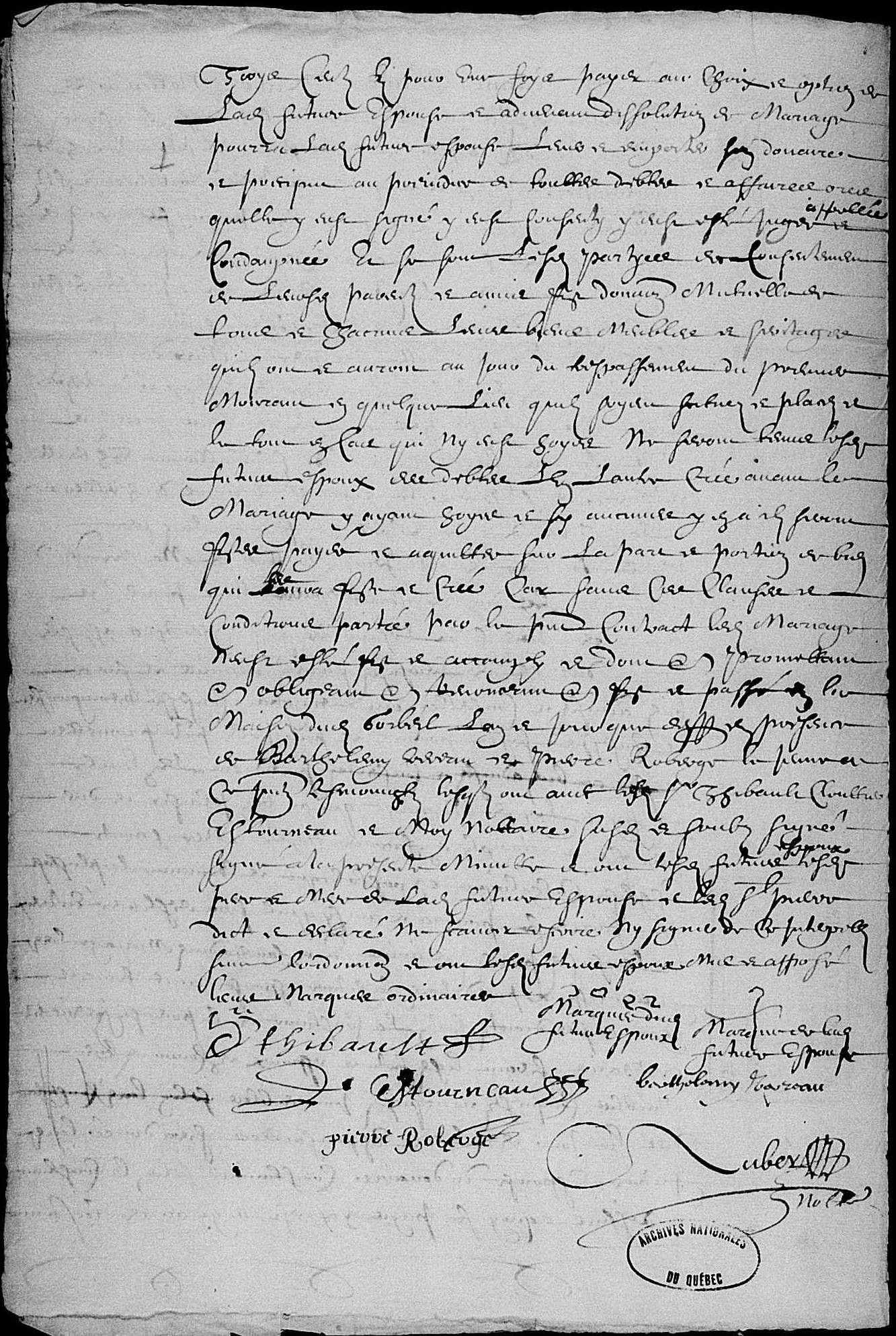 - Ibid. (https://numerique.banq.qc.ca/patrimoine/details/52327/4064891?docref=vmS3i5Yj1C_4s513P0vnmQ : consulté le 29 juil. 2025), obligation de Robert Villencourt à Anne Gasnier, veuve de Jean Bourdon, 3 août 1671, image 44 sur 881.